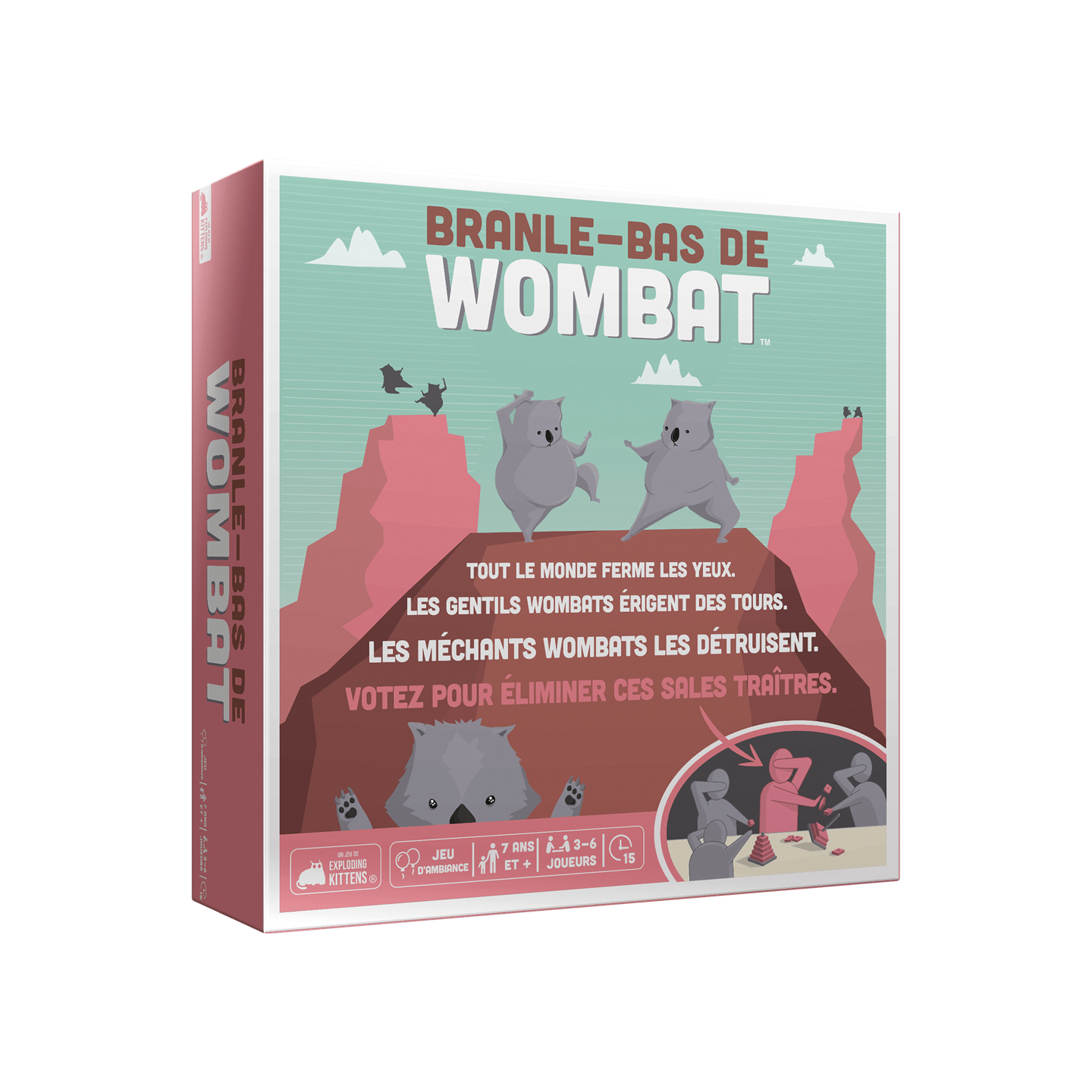 Plongez dans l’univers complètement déjanté de Branle Bas de Wombat, un jeu d’ambiance plein d’humour, de suspense et de fous rires garantis ! Ici, vous incarnez des wombats malicieux répartis en deux équipes secrètes : les gentils wombats qui veulent construire des tours solides… et les vilains wombats prêts à tout pour les saboter.