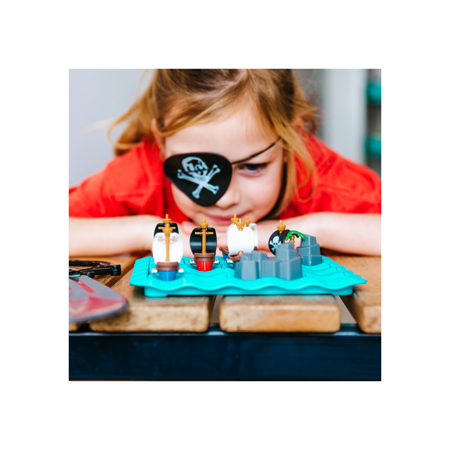 Pirates en vue ! vous propose de vivre des batailles épiques entre la marine royale et les pirates ! Suivez les défis proposés et placer les bateaux sur le plateau de jeu de façon à remplir votre mission ! Prêts moussaillons ?