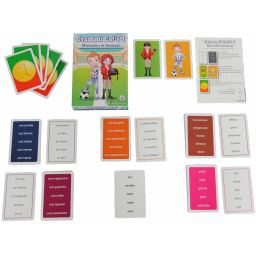 "Grammi Cat's 4 Masculin et féminin" est un jeu de cartes, de lecture de rapidité et de grammaire, pour les petits et les grands de 7 à 99 ans sur les mots masculins et féminins. Ce jeu, constitué de 5 séries de 42 mots (famille et relations, métiers, contes et légendes, adjectifs 2 niveaux) propose 3 règles et 2 variantes (les entraînements - solo et Duo pour un seul joueur, les Suites de mots et de phrases Duo pour un ou deux joueurs, les détectives pour 2 à 4 joueurs).