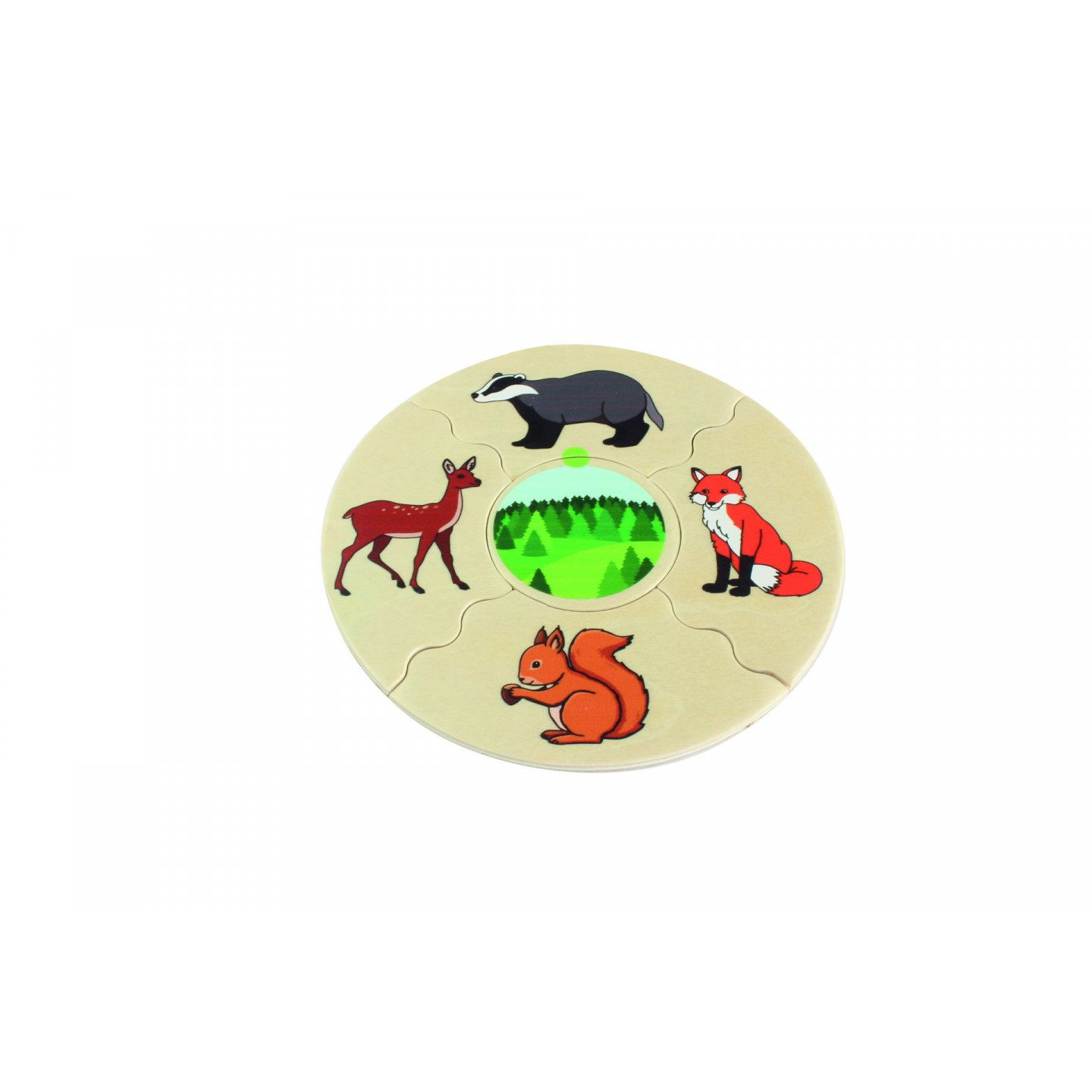 Puzzles tout en bois sur la thématique de l'habitat naturel des animaux. Ce jeu est accessible dès 4 ans.