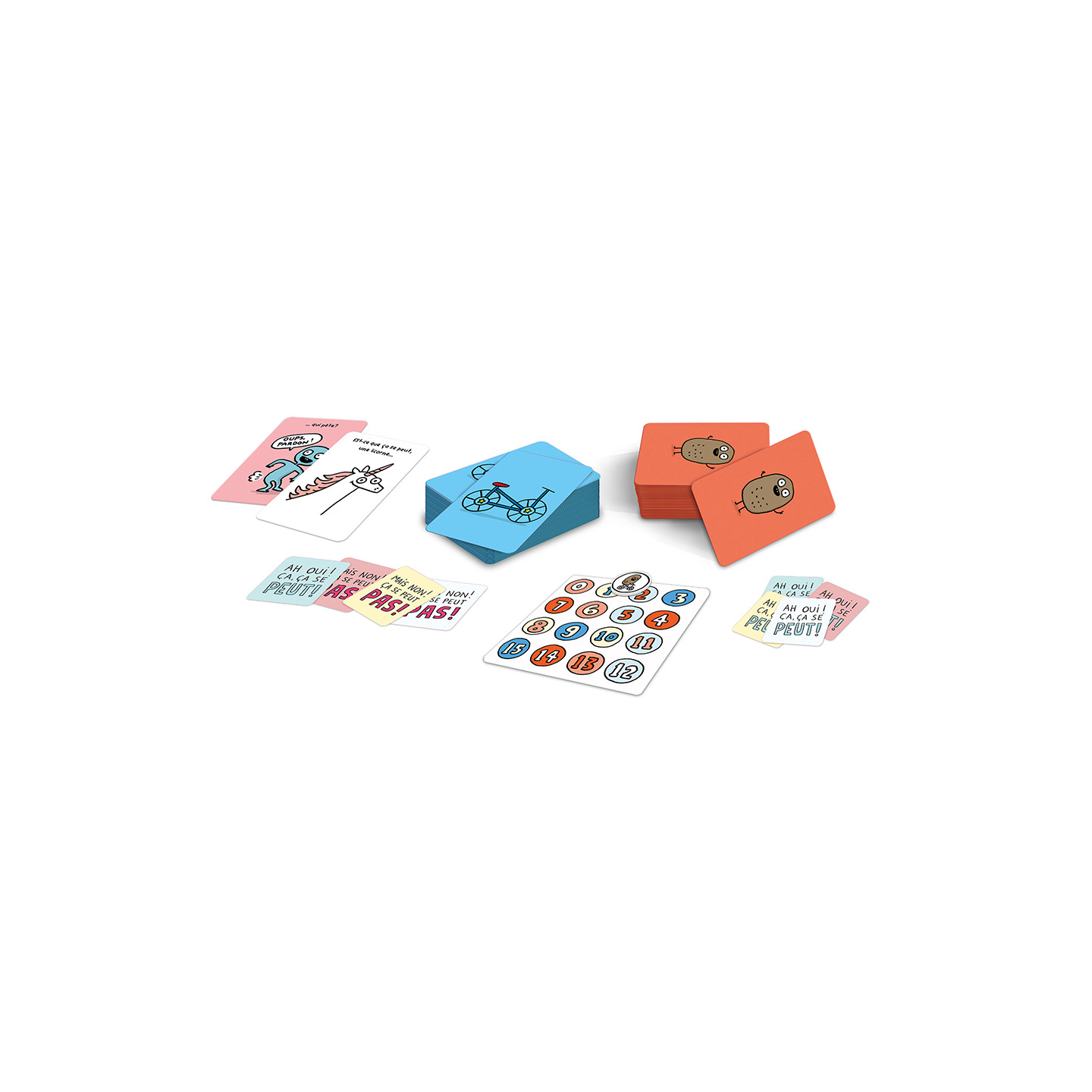 Principe du jeu : retournez une carte Patate et une carte Vélo et lisez l’association ainsi formée. Est-ce que ça se peut une licorne…qui pète? Décidez si ça se peut ou pas en prenant secrètement l’une de vos deux tuiles de vote. Révélez tous en même temps vos tuiles de vote. Si tout le monde a choisi la même tuile, la patate avance d’une case ! Sinon, elle reste sur place !