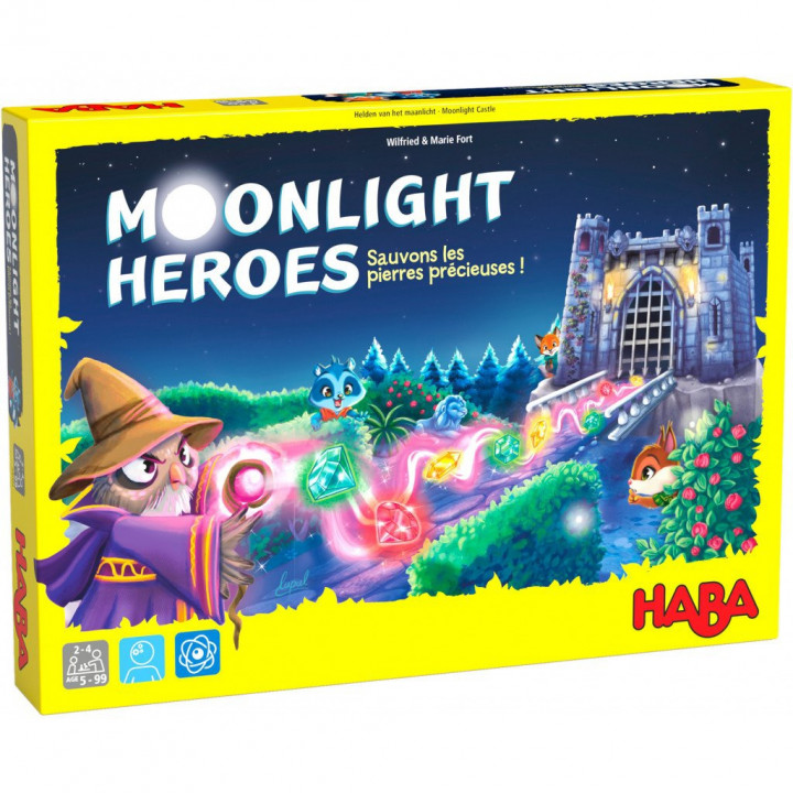 Moonlight Heroes est un jeu de collecte et de stratégie magnifiquement illustré avec un château en 3D et un mécanisme fascinant pour faire sortir les pierres précieuses du château. Des variantes sont par ailleurs proposées pour les Héros plus aguerris.