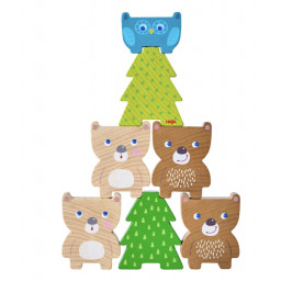 Avec Les Acrobates de la Foret les enfants ont comme mission d'empiler les différents éléments : oursons, sapins et hiboux, pour réaliser de très jolies figures. Il est ainsi possible de créer librement des scénettes en suivant son imagination ou de suivre les modèles proposés sur les cartes (20 modèles au total repartis en 3 niveaux de difficulté).
