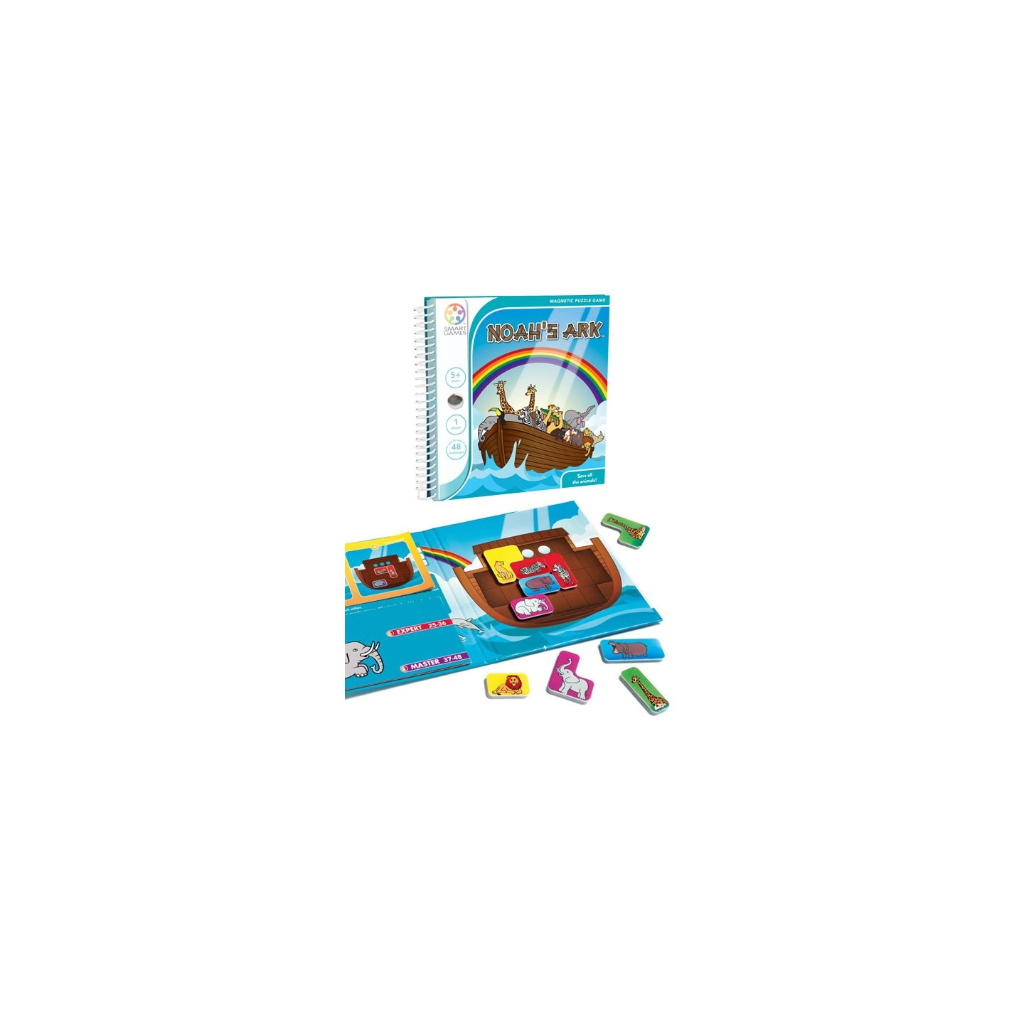 Votre mission dans L'Arche de Noé ? Embarquer les animaux mâles et femelles à bord de votre arche pour les sauver du déluge qui menace le continent. Après avoir choisi un défi parmi les 48 proposés, l'enfant devra positionner les premières pièces comme indiqué. Puis, il devra placer les suivantes afin que chacun trouve sa place à l'intérieur du bateau, à côté de son compagnon, et la tête en haut pour supporter le long voyage en perspective !