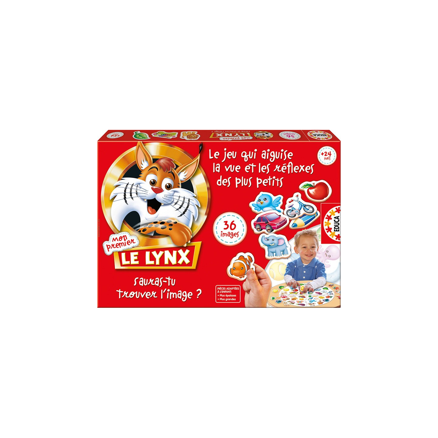 Mon premier Lynx comprend 36 cartes illustrées. C'est un jeu d'observation et de rapidité où les enfants devront associer, le plus rapidement possible, les images aux illustrations du plateau de jeu. Plusierus règles de jeu différentes sont proposées.